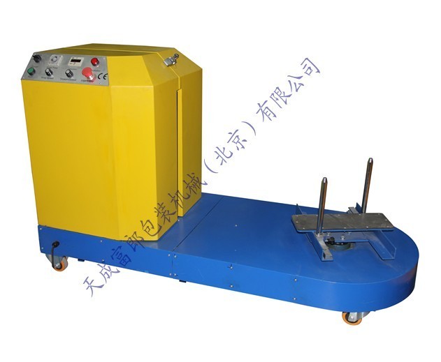 行 李包裝機是專為機場包裝行李等而設(shè)計的。從而在行李運輸過程中起到保護的作用,以防止破損。防止行李被調(diào)換等現(xiàn)象!設(shè)備可以移動,操作人員將行李放到轉(zhuǎn)臺 上,并根據(jù)行李的大小來調(diào)節(jié)垂直桿的,從而使行李可以平穩(wěn)的放在轉(zhuǎn)臺上。然后操作人員按操作面板上的啟動按鈕,設(shè)備自動進行包裝,一般行李包3—5層即可!包裝完畢后,操作人員手工切斷薄膜,然后取走行李!