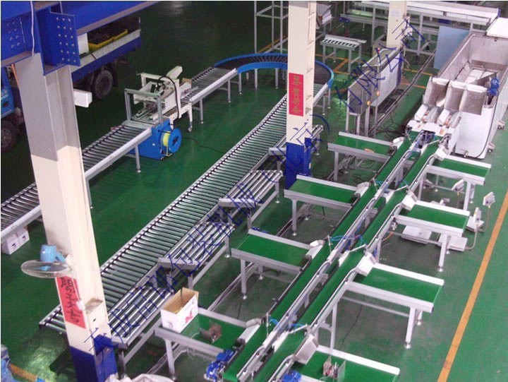 結(jié)構(gòu)形式有:槽型皮帶機(jī)、平型皮帶機(jī)、爬坡皮帶機(jī)、轉(zhuǎn)彎皮帶機(jī)等多種形式,輸送 帶上還可增設(shè)提升擋板、裙邊等附件,能滿足各種工藝要求。輸送機(jī)兩側(cè)配以工作臺(tái)、加裝燈架,可作為電子儀表裝配,食品包裝等裝配線。
